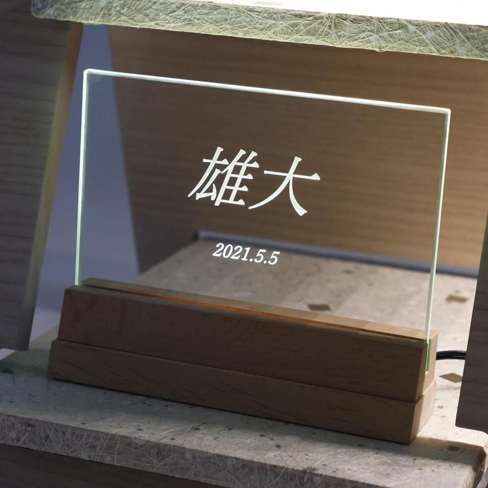 〈小 物〉ガラスプレート/名前入り/LED電気付/コード式