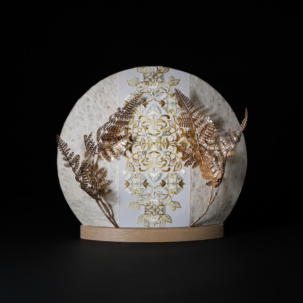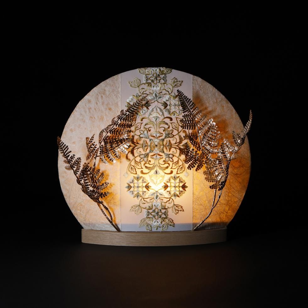 〈屏 風〉丸型照明/限定刺繍 02007-B/オブジェ付き(金)/コード式